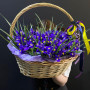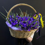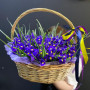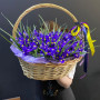 101 синий ирис в плетенной корзине в Черняховске