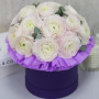 17 белых ранункулюсов в шляпной коробке в Черняховске