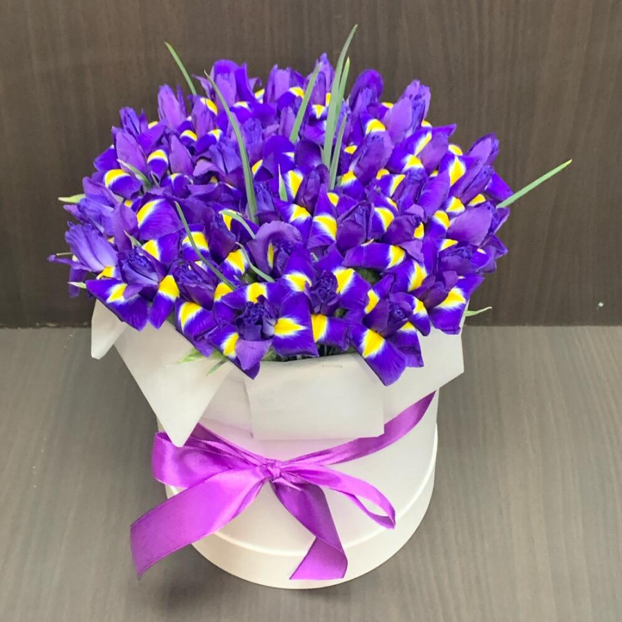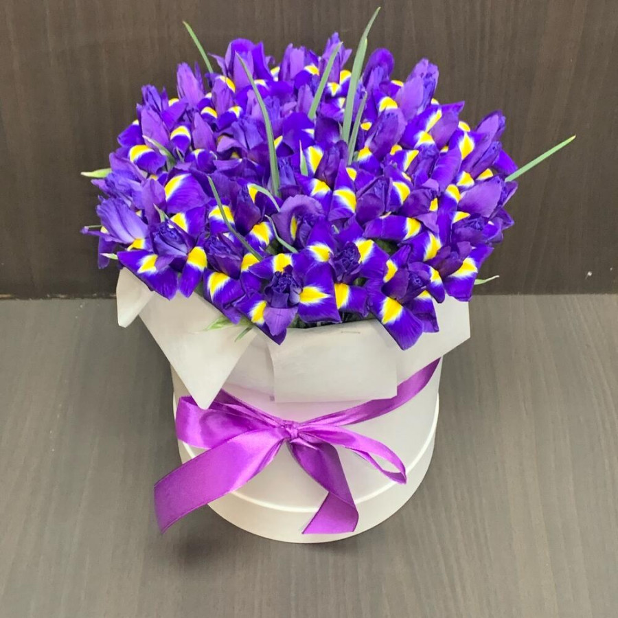 51 фиолетовый ирис в шляпной коробке в Черняховске