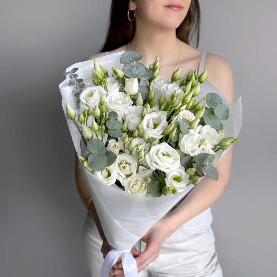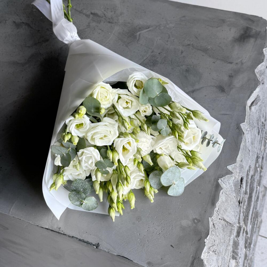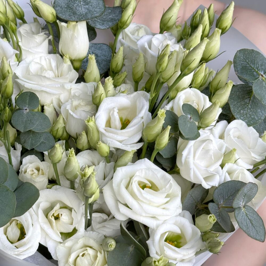 Букет из 7 белых эустом и эвкалипта в Черняховске