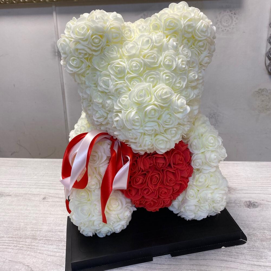 Мишка из роз белый