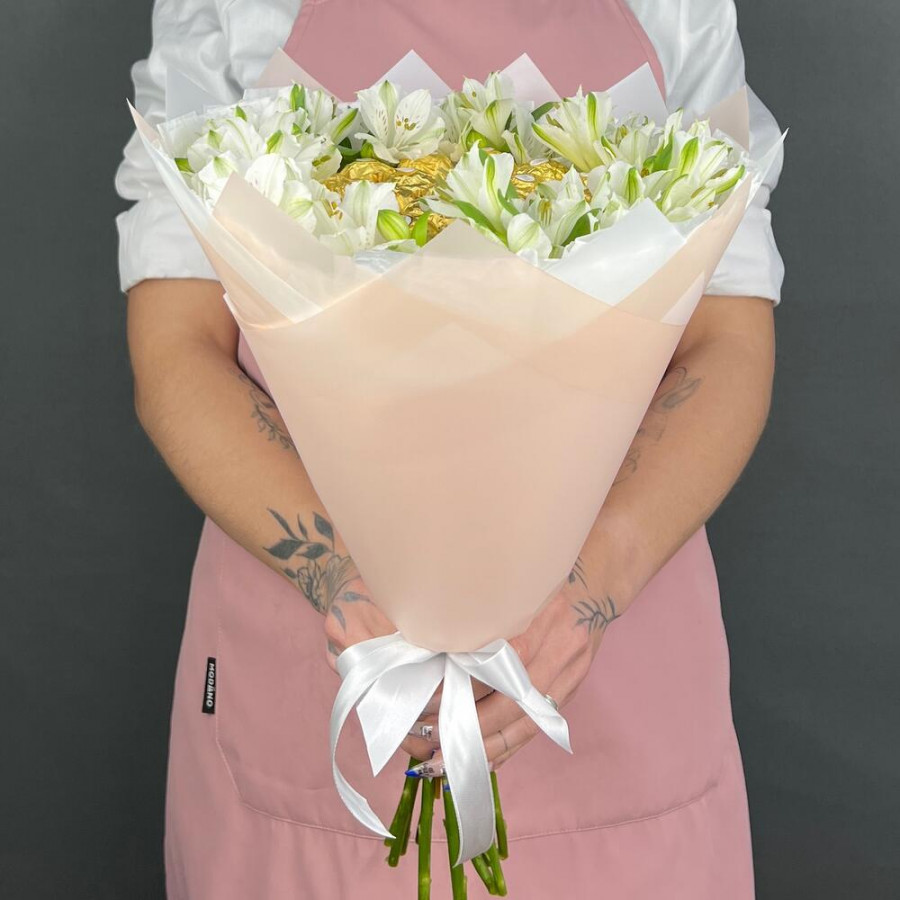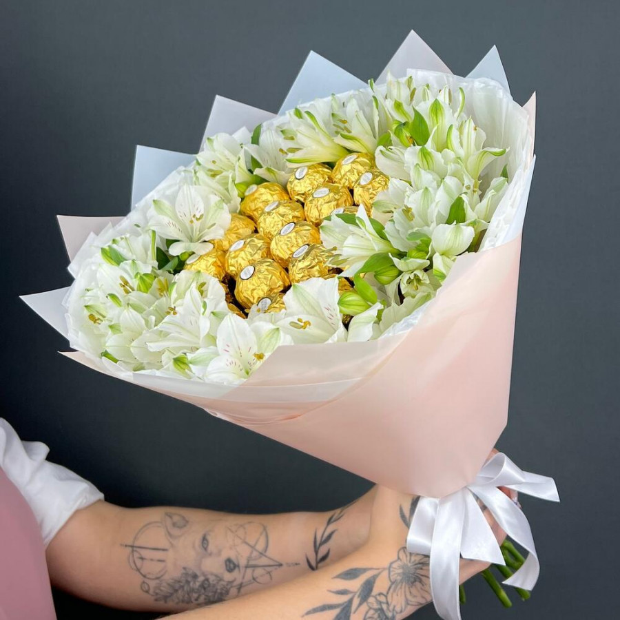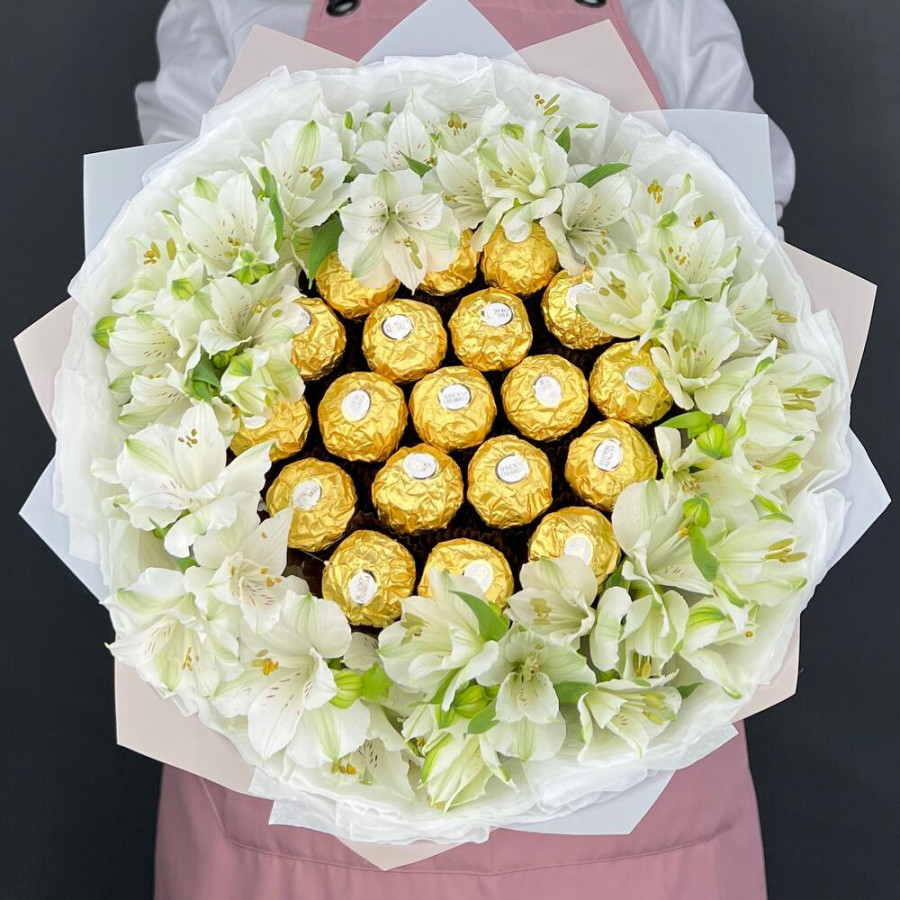 Букет из конфет Ferrero Rocher и и альстромерии в Черняховске