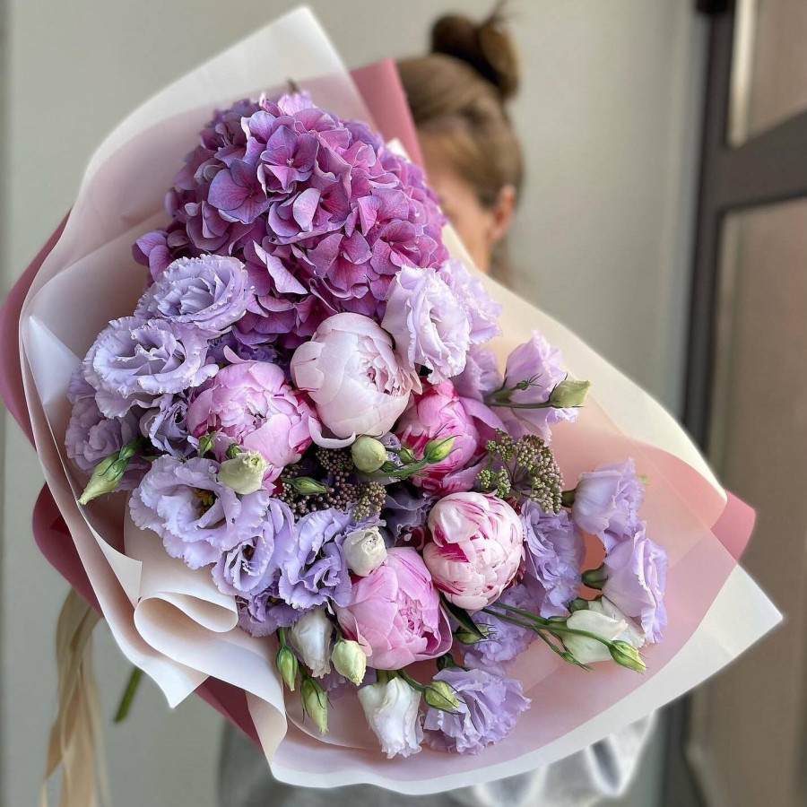 Букет из пионов и фиолетовой гортензии в Черняховске