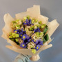 Букет из синих ирисов и кремовых эустом в Черняховске