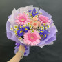 Букет из розовых гербер, ирисов и ромашек в Черняховске