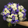 Букет из синих ириcов и белой кустовой розы в Черняховске