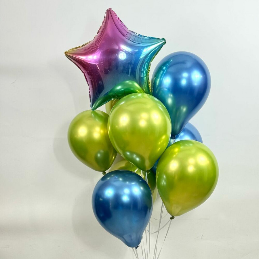 Шар Фольгированный «Звездочка» - 1 Шар латексный синий - 3 Шар латексный зеленый -5